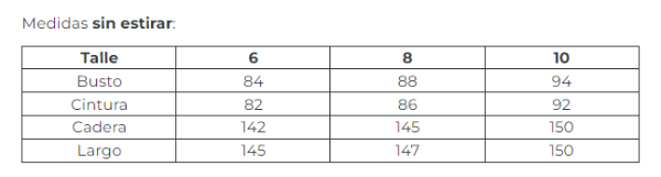 Medidas sin estirar: