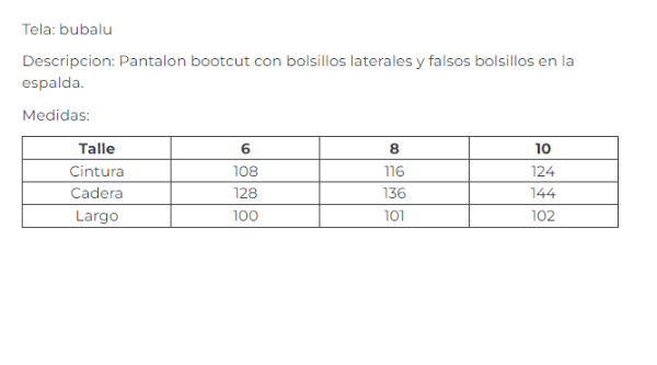 Descripcion: Pantalon bootcut con bolsillos laterales y falsos bolsillos en la espalda.