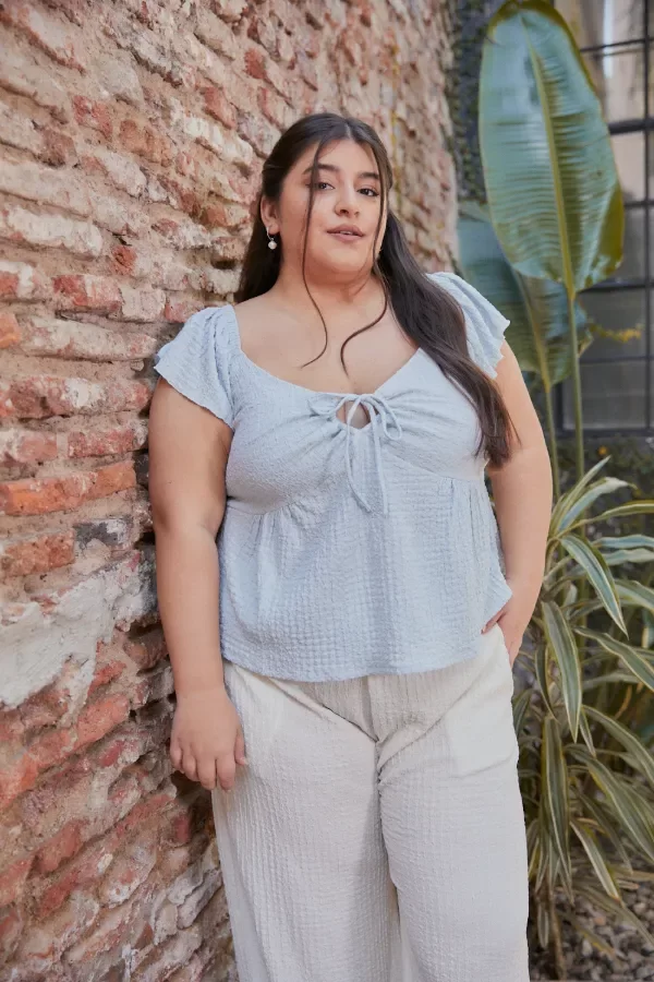 Descripcion: Blusa con cordon en el centro de busto para fruncir. Tiene mangas con vuelo y elastico en los hombros y espalda.
