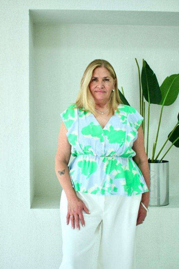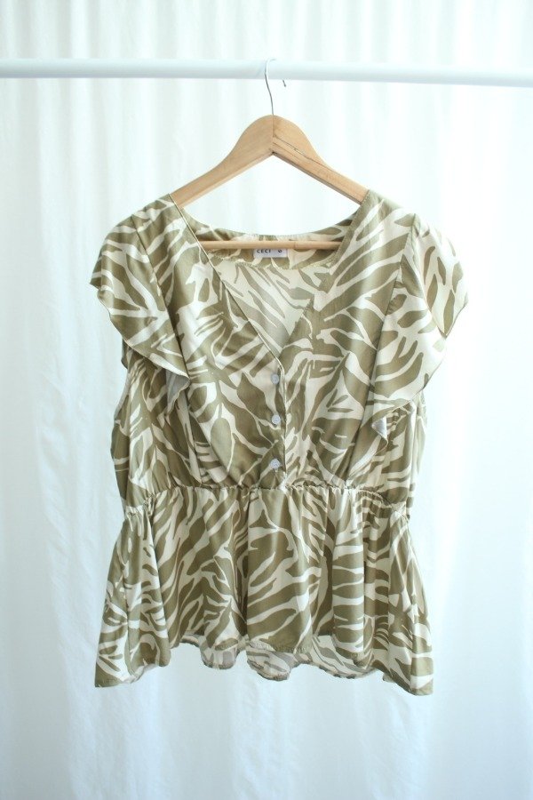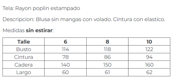 Descripcion: Blusa sin mangas con volado. Cintura con elastico.