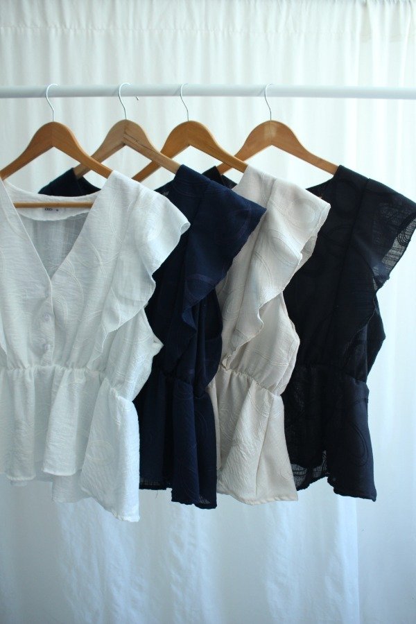 Descripcion: Blusa sin mangas con volado. Cintura con elastico.