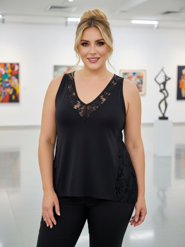 musculosa corta en escote V de modal viscosa combinada con encaje.