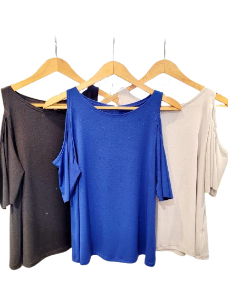 Remera con hombros descubiertos. Tela: ITY con brillo