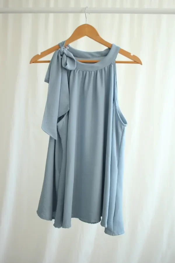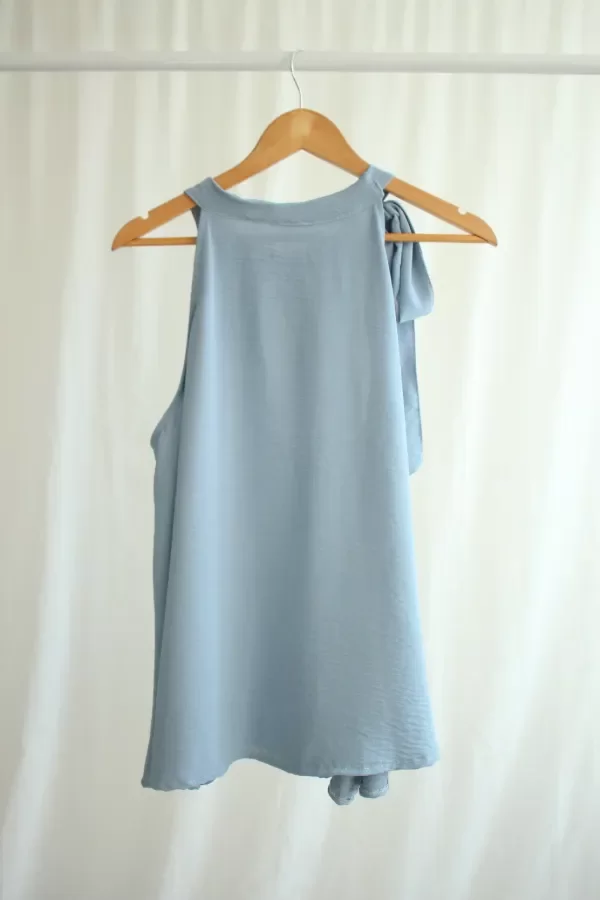 Descripcion: Musculosa con escote halter y lazo en el hombro derecho.